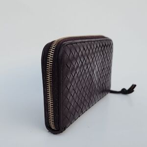 Bottega Veneta Round Long Wallet Intrecciato Dark Brown Leather Zippy Wallet!