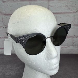 Authentic Bottega Veneta Ruthenium Grey Quilted Sunglasses NWT