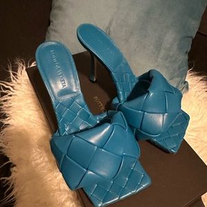 Bottega Veneta Sandal Maxi Tubolare Intreccio Nappa in Vintage Blu, Size 8