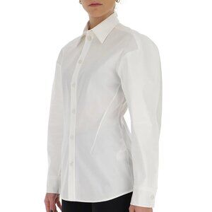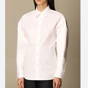Bottega Veneta Size 4 White Collared Button Down Poplin Shirt with Triangle Back