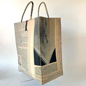Inspired by a classic shopping bag, rolled-handle tote crafted of leather patterned in a vintage newspaper print.