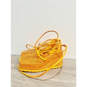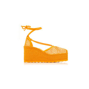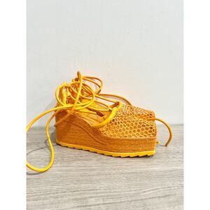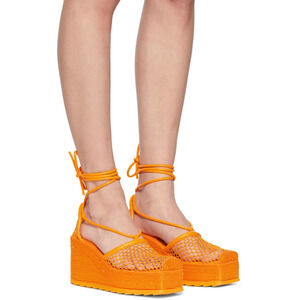 Bottega Veneta Sporty Web Raffia Wedge Platform Espadrilles Sandals Orange EU 34