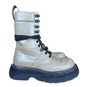 Bottega Veneta The Bounce Lace Up Mid Calf Combat Boots Allspice Tan Size 39