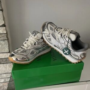 Chic Bottega Veneta sneakers in white and gray. Ideal for everyday style.
