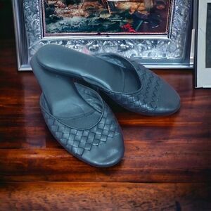 Elevate your shoe game with these sleek Bottega Veneta mules in timeless black. Crafted from high-quality leather, these heels are a must-have for any fashion-forward woman. The slip-on style and mule design make them easy to wear and perfect for any occasion. Embrace the luxury of Bottega Veneta with these stunning shoes. The size 7 mules feature a comfortable heel height, making them perfect for all-day wear. The iconic Bottega Veneta design is sure to turn heads, and the black color makes them easy to pair with any outfit. Add these women's shoes to your collection today and step out in style.