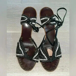Bottega Veneta brown woven Lace Up sandal Heels sz 38 READ DESCRIPTION