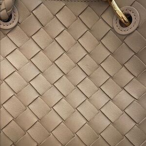 Chic woven design. Elegant shoulder strap. Gold-tone accent adds luxury.