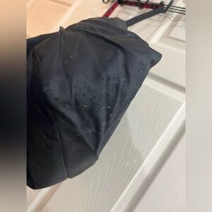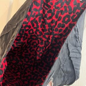 Lightly used in Italy were it was originally purchased years old & has been in storage ever since then. It’s washable. It could be worn the red & black leopard style with brand name signature stamp side or reverse to the solid black side with a zipped pocket & silver hardware with brand label. 8.7”w 12.2”h 4.3”d