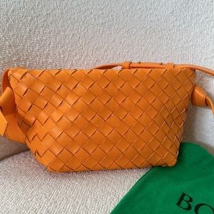 Bottega veneta tie tangerine bag in size small. Authentic. BRAND NEW. Original price $2500. Serious buyers only. Authenticity card and dust bag included. 10.5" W x 6" H x 5.25" D