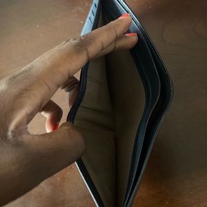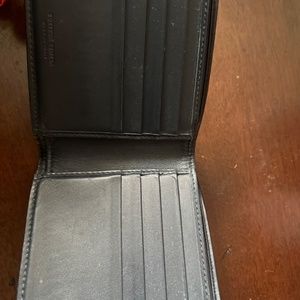 Navy leather bi-fold wallet. It is pre-owned so please examine all photos before purchase. Happy to take additional photos.