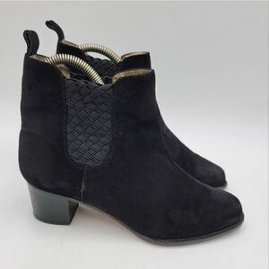 Bottega Veneta Ankle Booties Woven Black Suede Heeled Boots size 6.5 B