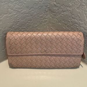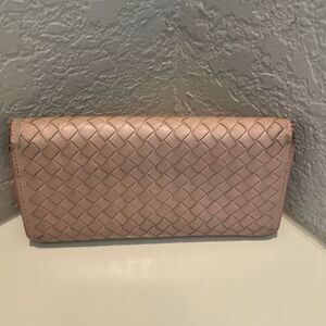 Bottega Veneta Women's Zip Around Long Wallet Light Pink Woven Leather Classic