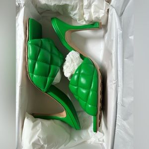 Bottega Venetta BRAND NEW 90mm Nappa Quilted Puffy Slide, Parakeet (Green) color, size 9.5.