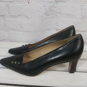 Classic Black Leather Pointed Toe Heels