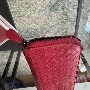 Bottega Venetta Red Intrecciato Woven Nappa Leather Zip Around Wallet