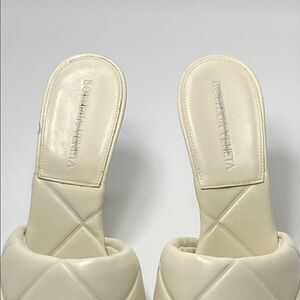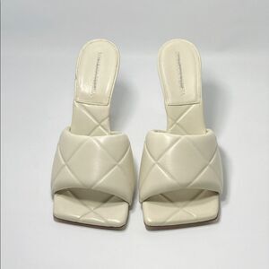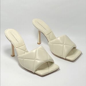 Diamond quilting adds texture to this pair of chic mules with a stiletto heel.