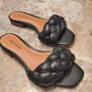 Bottero Braided Leather Sildes-Black Leather -Made in Brazil- Comfortable-Great Condition