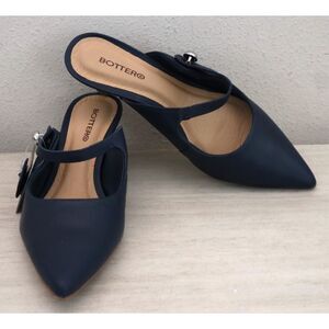 Bottero WMN Sz 6 Navy Blue Leather Botlivia Legacy Pointed Toe Kitten Heels