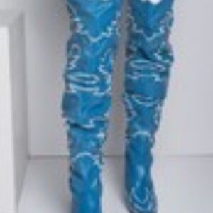 Bottes hautes cuisses cowboy western broderie slouchy neuves talon épais