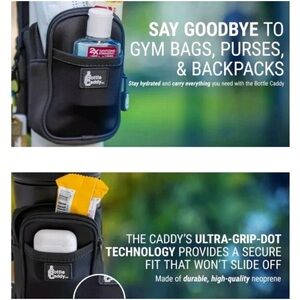 This preowned bottle caddy in medium size is perfect for women who want to carry their bottles with them on the go. The exterior color is a stylish black, and the pouch style allows for easy access to the bottle pocket. Made of durable polyester neoprene, this caddy is built to last. It is a great addition to any collection of women's bags and handbags.