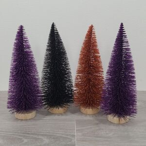 Bottlebrush Trees Lot Of 4 Orange Purple Black Glitter Fall Halloween Home Decor