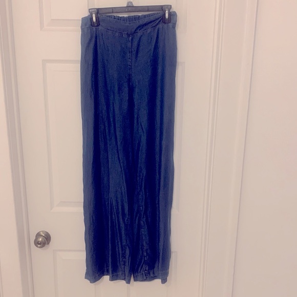 Elegant navy wide-leg trousers. Ideal for versatile styling.