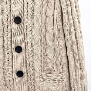 Botvela Cardigan S Beige Wool Blend Cable Knit Shawl Collar Grandpa Core Sweater