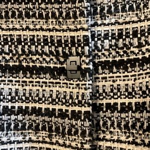 White, black, and gold thread bouclé jacket from H&M. Like new condition.