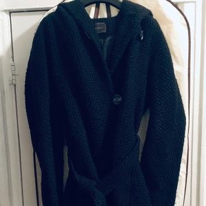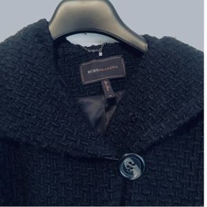BCBG MaxAzria Black Bouclé Hooded, Belted, 3/4 Swingcoat