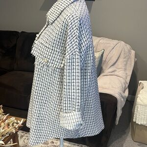 Shein Boucle Black and White Shacket size medium like new Gold and pearl button detail pit to pit 22 inches length 29 inches
