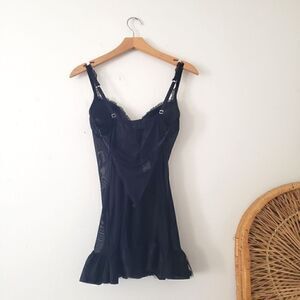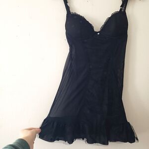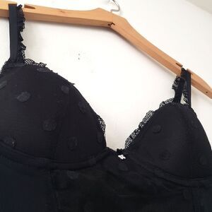 Boudoir Collection Black Teddy Lingerie Polka Dot Thong Set S NWOT