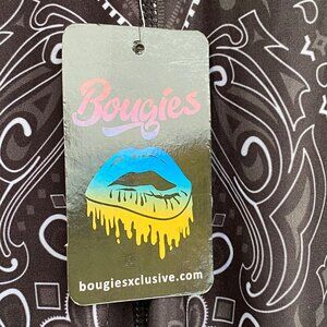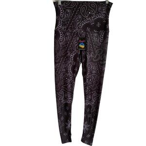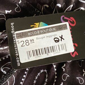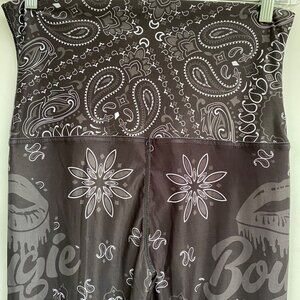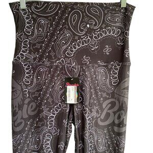 Bougie Boutique Women’s Leggings Size XXL 2XL Black White Paisley Print Spellout
