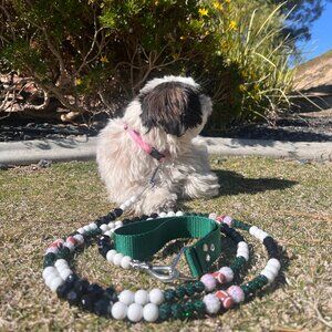 Boujee Football Dog Leash - Beaded - NFL (Eagles) - Dk Green, White & Black