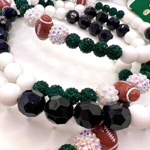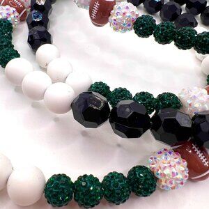 NFL Football (Eagles, etc) or College colors in sparkle dark green & white multi color rhinestone beads. Black faceted round beads and white silicon round beads