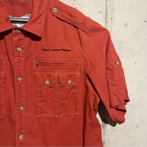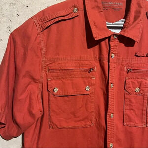 Boulder Creek Shirt Mens 2XL Utility Hiking Safari Short Sleeve Orange Pockets