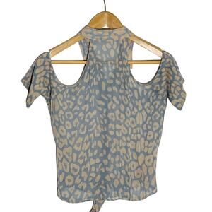Boulee Womens blue animal Silk print cold shoulder blouse size 2