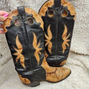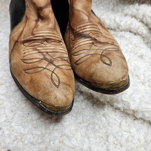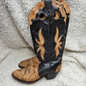 Boulet Canada Vintage Tan and Black Leather Western Boots sz 6.5