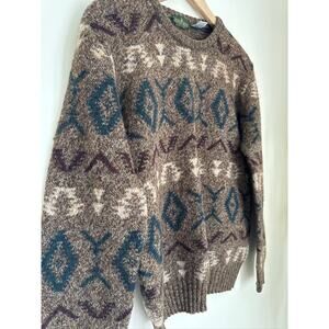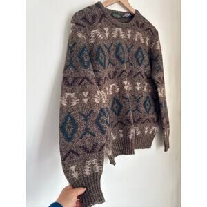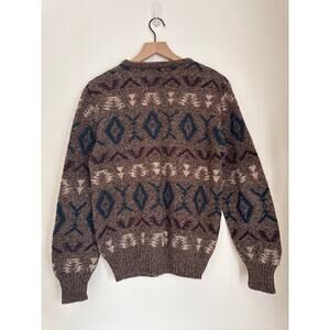 * Tags: Italian wool sweater,crewneck sweater,patterned knit,vintage sweater,fall fashion,winter layering,brown teal sweater