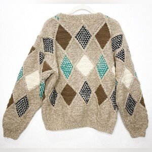 Boundary Waters Vintage 90 Streetwear Shetland Wool Diamond Knit Grandpa Sweater