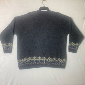 Boundary Waters Vintage Gray W/Floral Design Knit Cardigan Size Large. Great pre-owned condition. 100% acrylic machine washable. 4 front button closure. Drop shoulders. Mild pilling. Measures chest 48", length 27", sleeve 17".