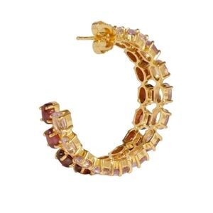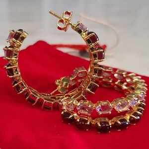 Bounkit Magaly Hoop Earrings, Amethyst | Garnet | Goldtone, NWT