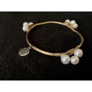 Bourbon And Boweties Goldtone Wire Wrap Faux Pearls Bangle Bracelet 7.5"