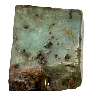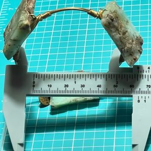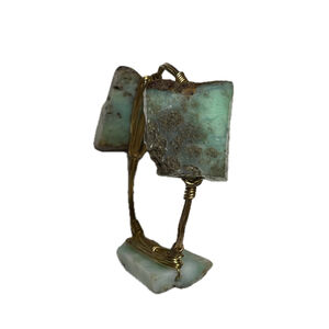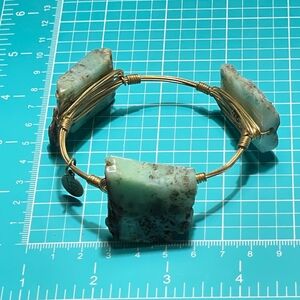 Bourbon & Bowties Gold Plated Wire Wrapped Bangle Bracelet with 3 Chunks of Natural Light Green Stone,situated equally throughout the bracelet.