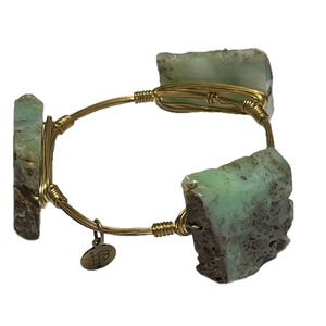 Bourbon & Bowties BB Gold Plated Wire Wrap Bangle Bracelet Green Natural Stone