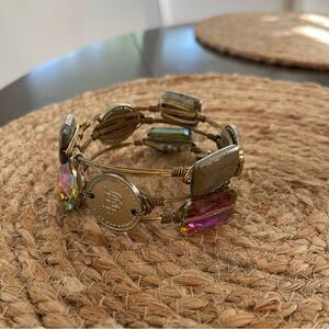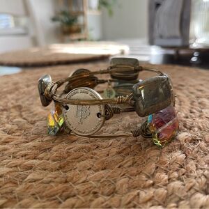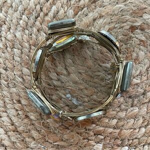 Bourbon & Bowties Bangle Stack Set of 3 Wire Wrapped Bracelets Neutral Gold