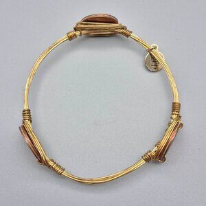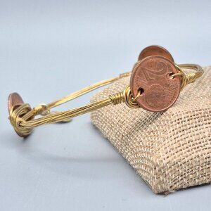 Bourbon & Bowties Gold Tone Bangle Bracelet 2 Cent Euro Coins Wire Wrap Unique