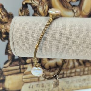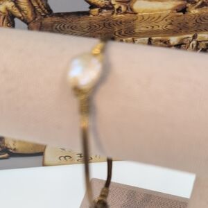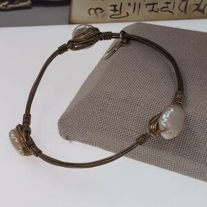 This stunning bracelet from Bourbon and Bowties features a captivating combination of gold and cream hues, offering a sophisticated touch to any outfit. Its elegant design makes it a versatile accessory, perfect for both everyday wear and special occasions.