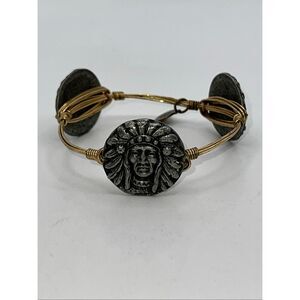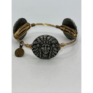 Bourbon and Bowties Pewter Indian Head Gold Plated Wire wrap Bangle Bracelet