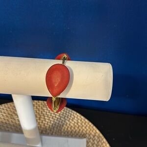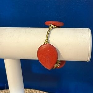 Bourbon and Bowties Red Stone Gold Tone Wire Wrapped Bangle Bracelet
