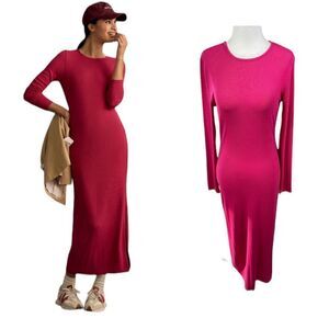 Bourdeaux Long Sleeve Maxi Dress Pink Anthropologie size Small/petite